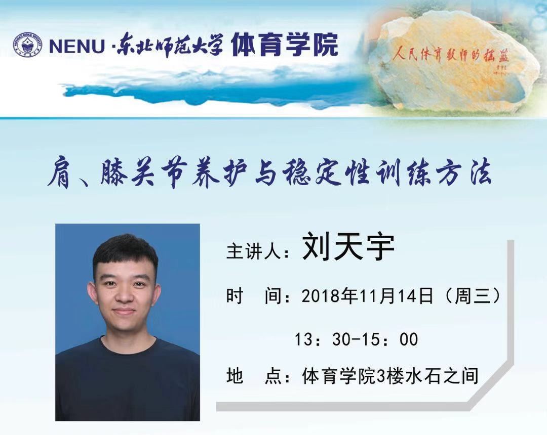 2018年11月14日(星期三)下午13:30在威尼斯8866993F水石之间威尼斯官网排球教研室刘天宇老师将做题为《肩、膝关节护养与稳定性训练方法》的学术报告,刘老师将以赴广州体能培训的切身体会,介绍人体局部核心稳定性训练的新理念、新思路及新方法,请威尼斯官网35岁以下青年教师及感兴趣的老师积极参加、观摩。