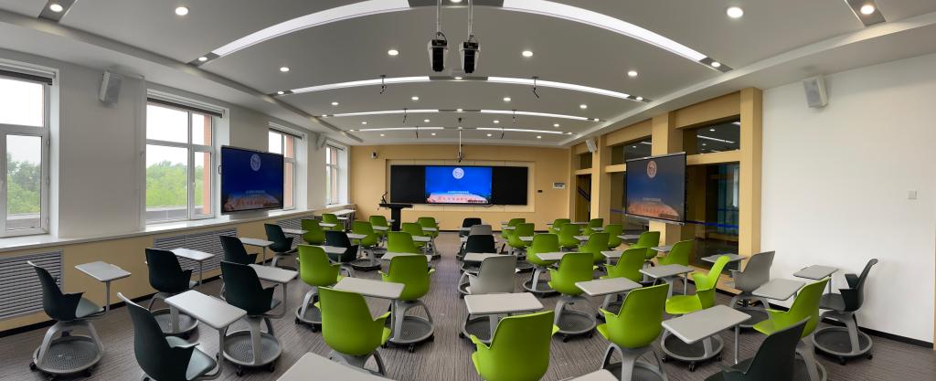 电教室现设有8个智慧教室,教学楼7间、田径馆1座。同时设有学生记者团,成员十余人,承担学院活动照相、录像,音像资料存档,教学影像资料存档借阅;智慧教室管理维护;学院网站管理维护;学院门禁系统管理等多项工作。